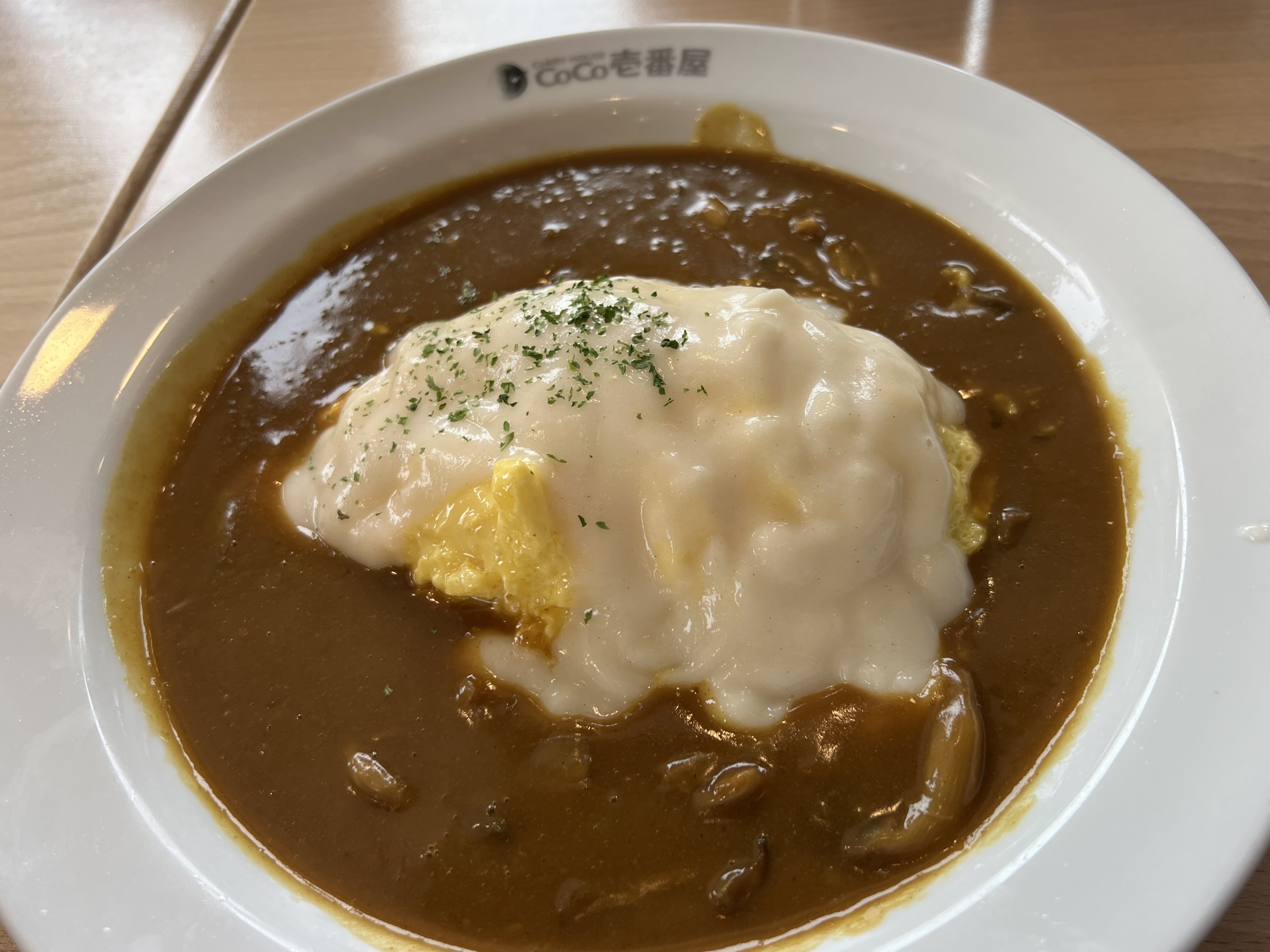 Coco Ichibanya cream and mushroom omelet curry… the omelet is filled with rice