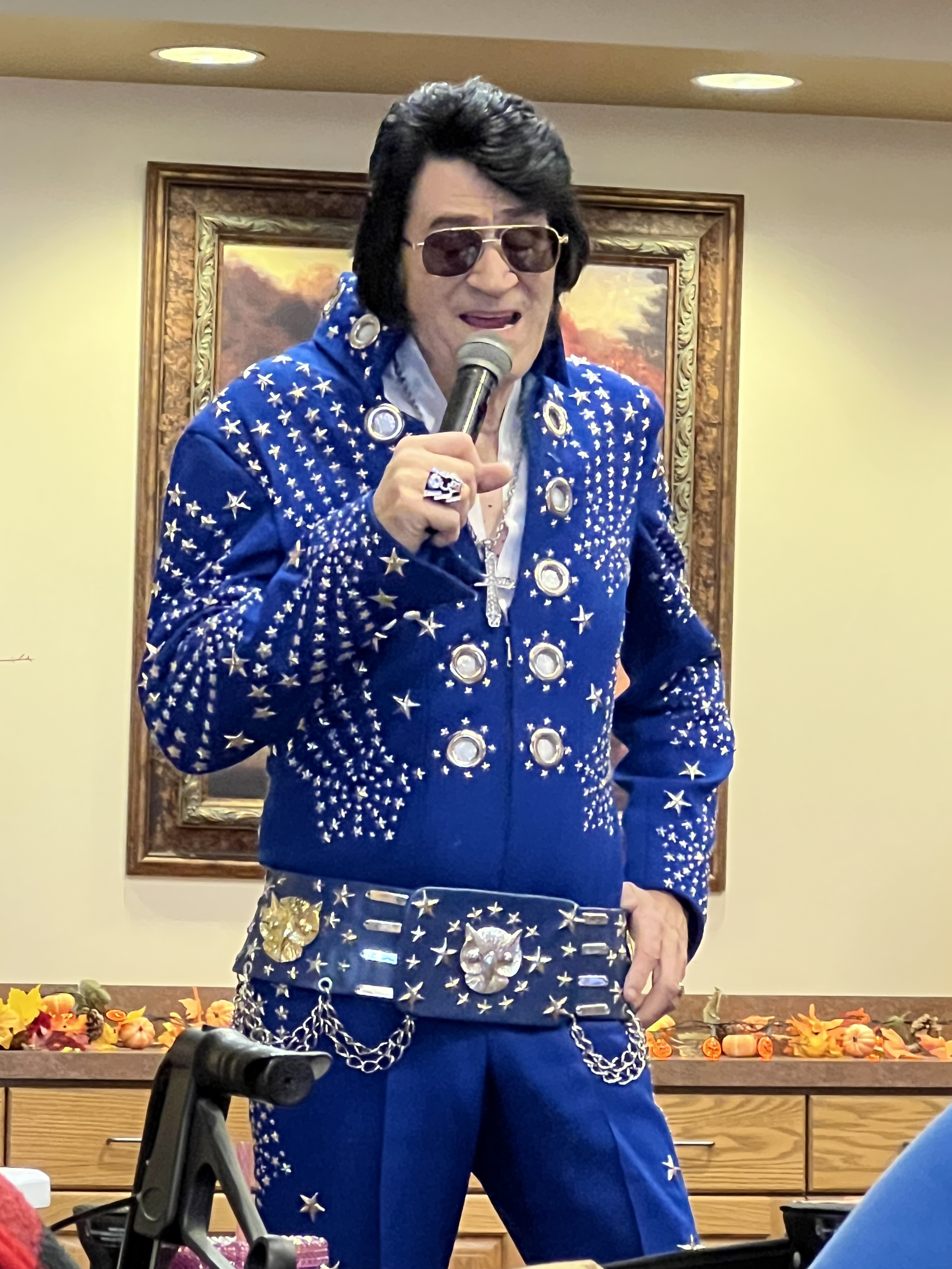 Elvis and me. Elvis was working the crowd. He was making some audience-members sing. I was afraid he was going to make me sing!