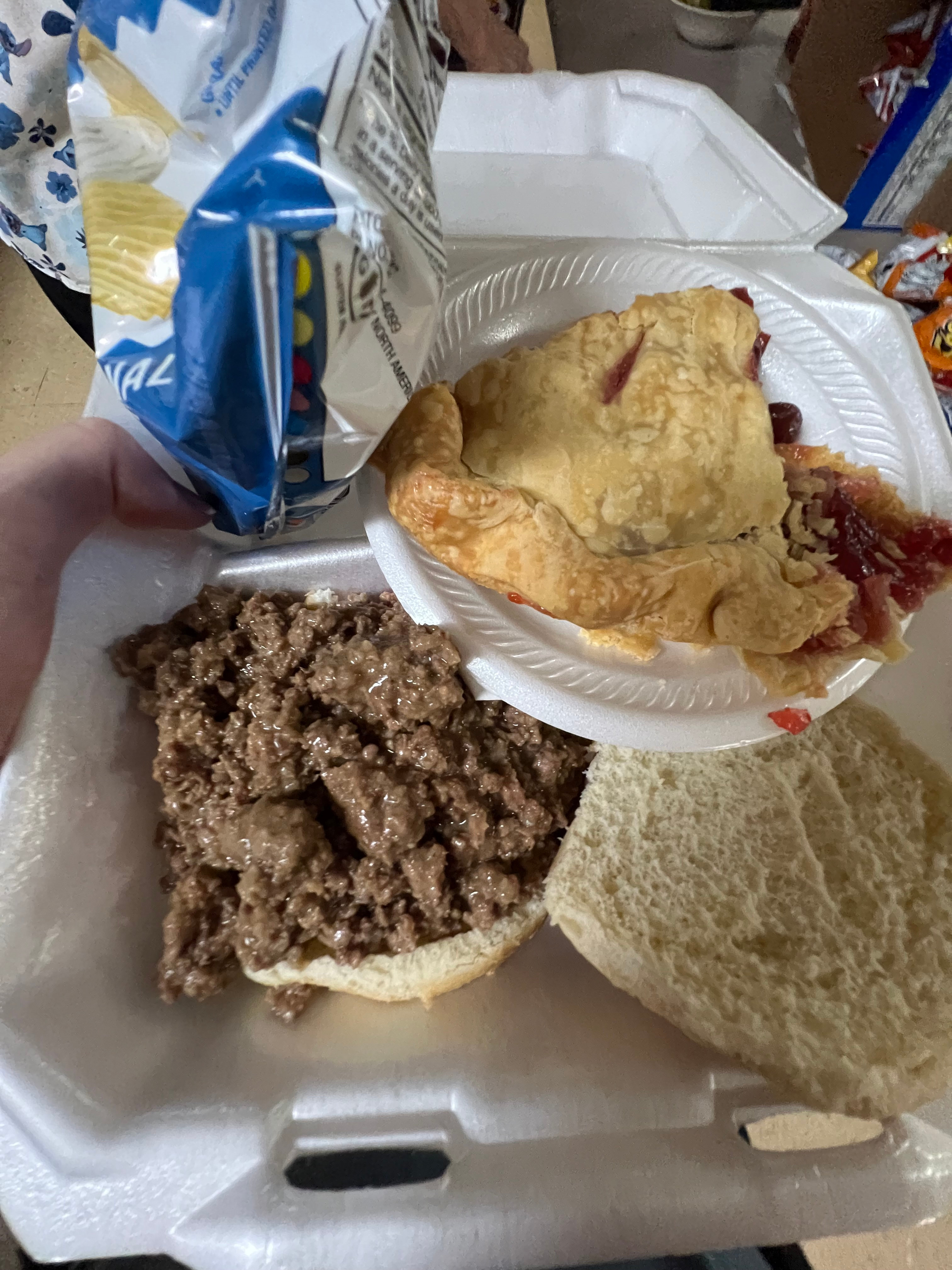 Fredonia United Methodist Church beef burger meal. My mom was the church organist for many years.