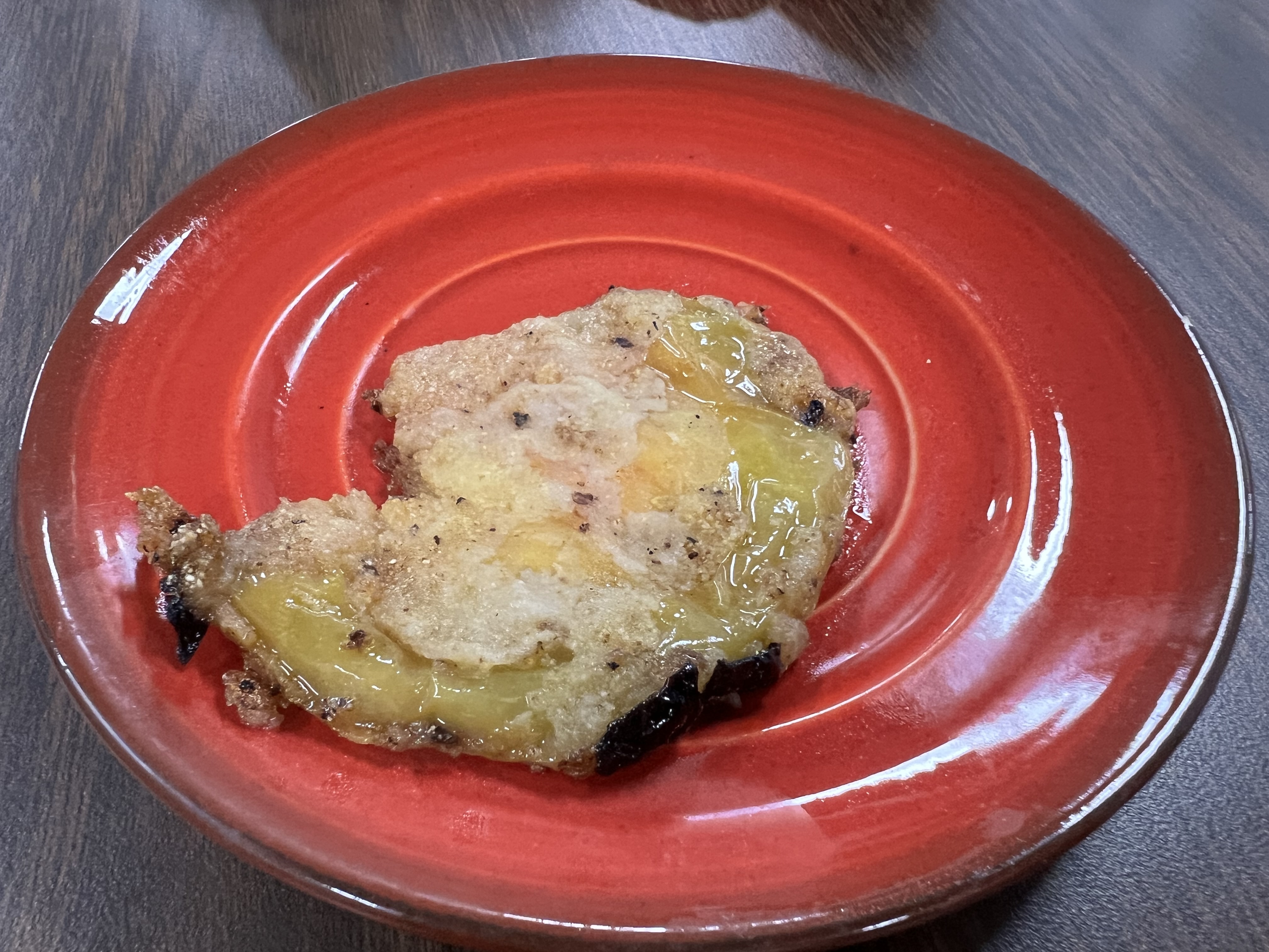 First time trying a fried green tomato. I had it at Grace Cafe. It was tasty!