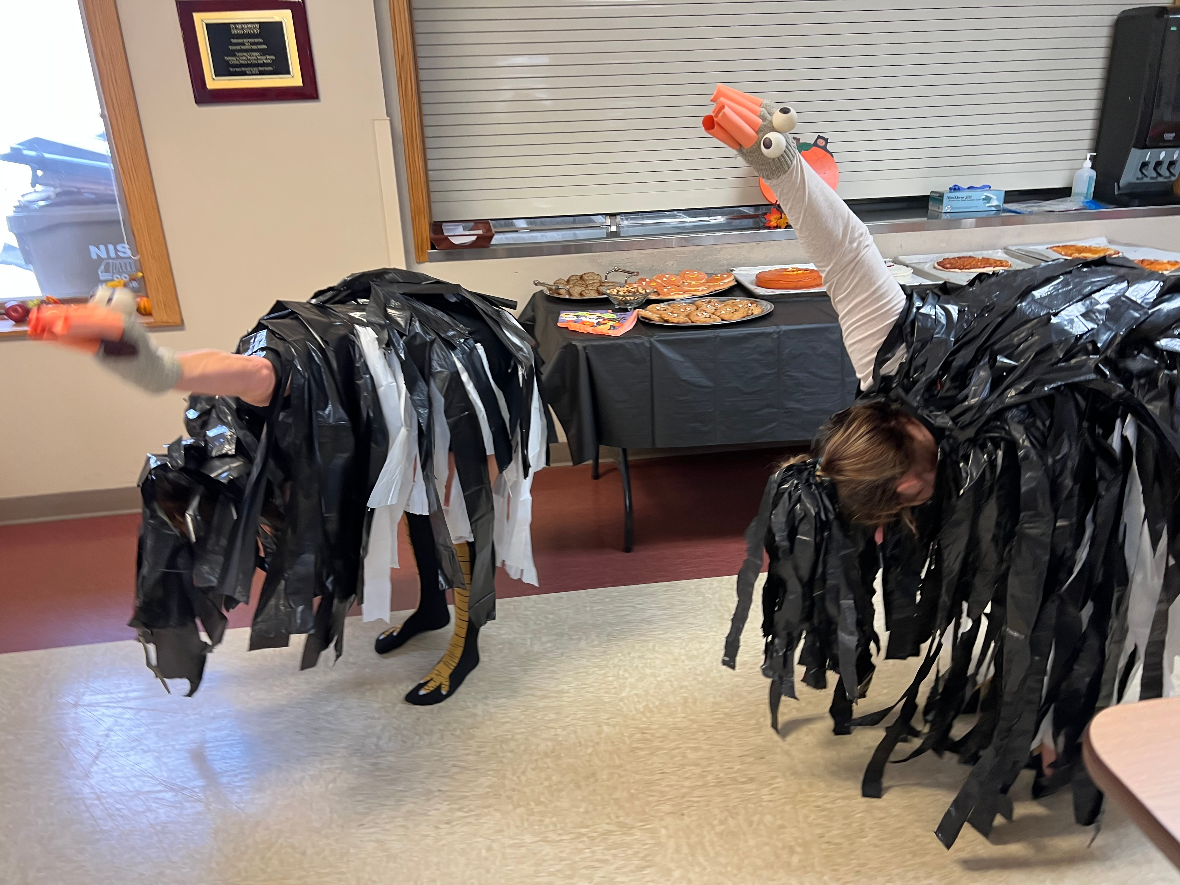 It was a tough decision. The winning staff costume was “a flock of ostriches.”