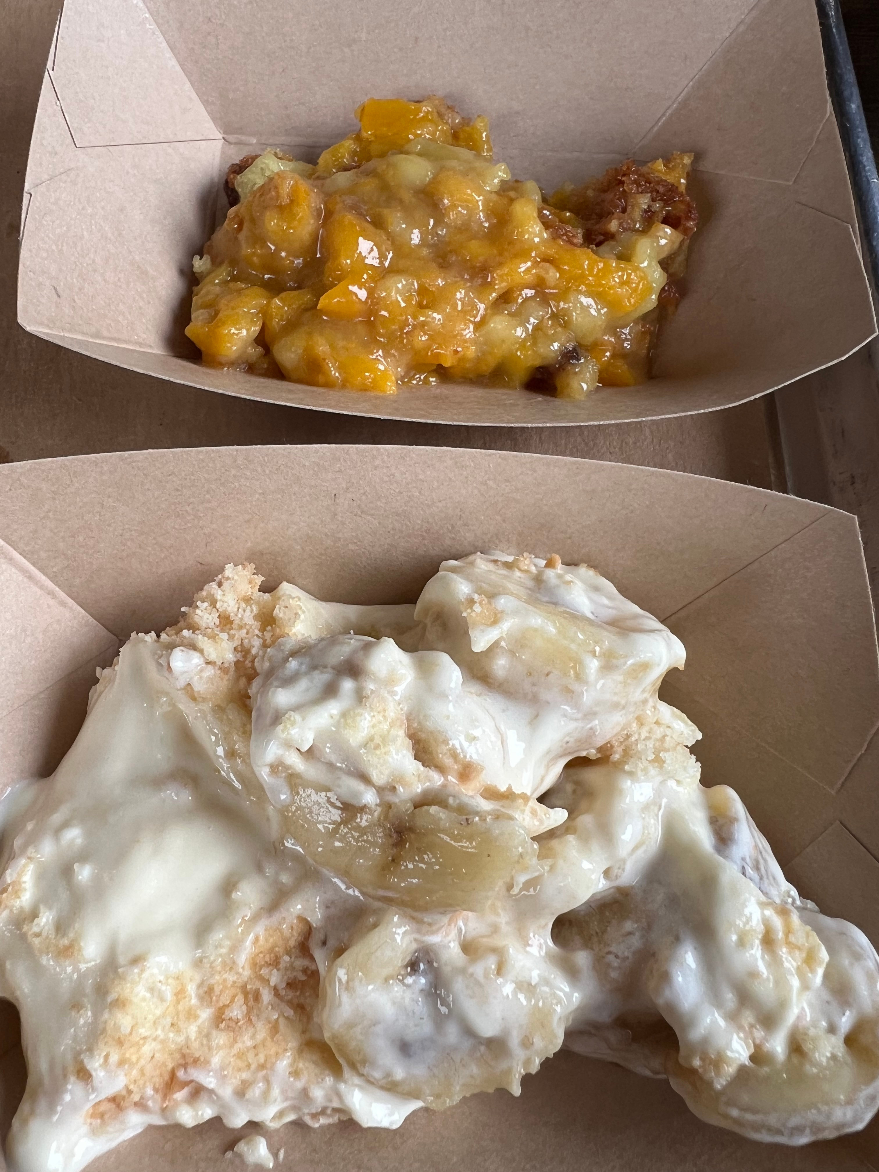 Complimentary peach cobbler and banana pudding. Not pictured: vanilla ice cream cone