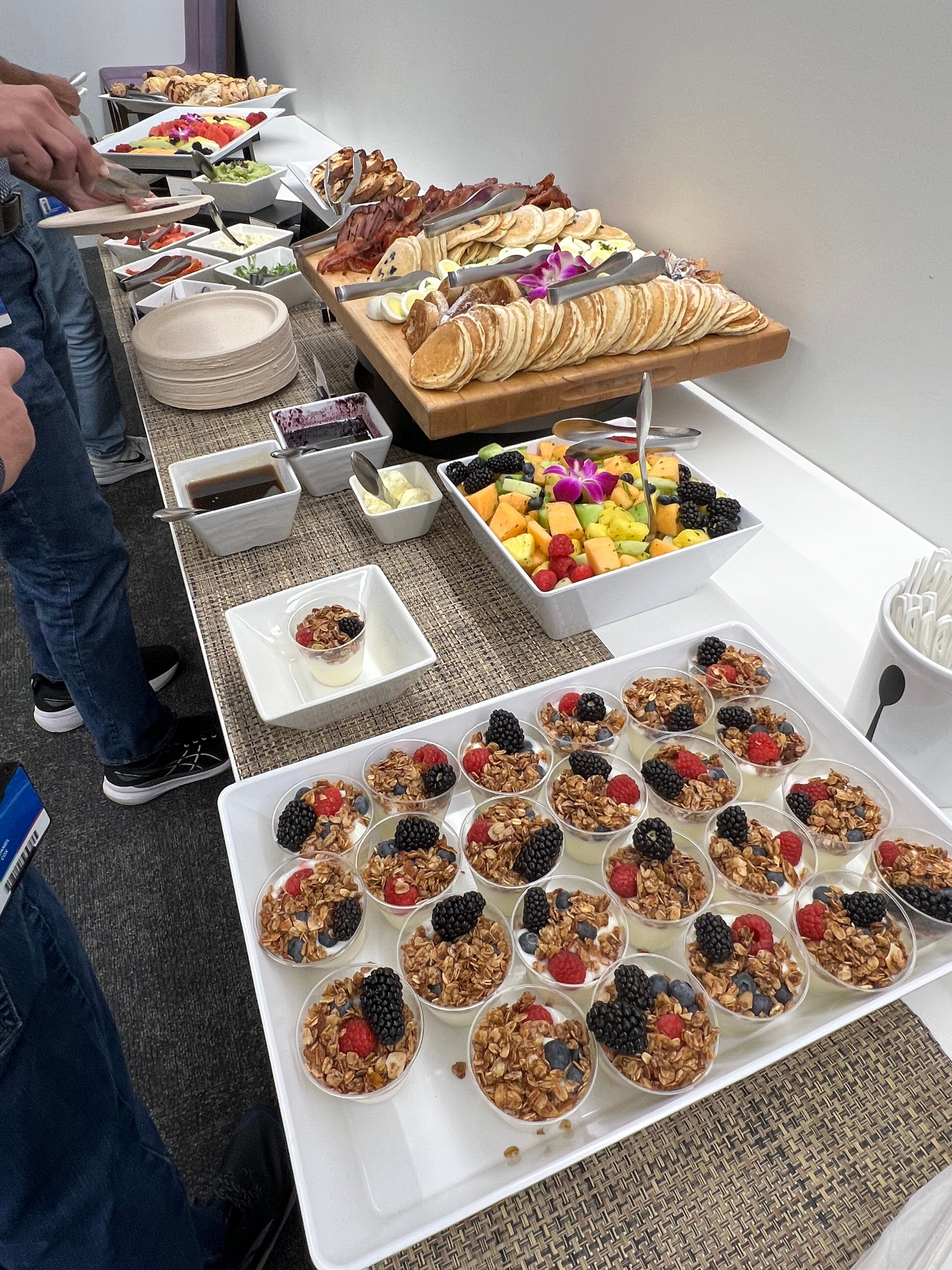 JPMorganChase Plano invites local vendors to sell food at lunchtime. Lucy’s Bakery is my favorite. They serve Argentinian empanadas and arepas (round, flat corn patty sliced open and filled with protein). Chicken is my go-to.