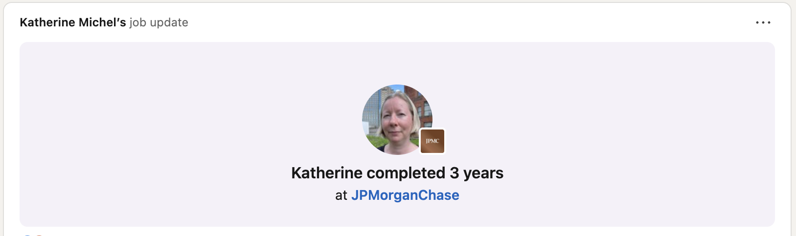 I had my three year anniversary at JPMorganChase. I can’t believe it has been three years. The time has flown by!