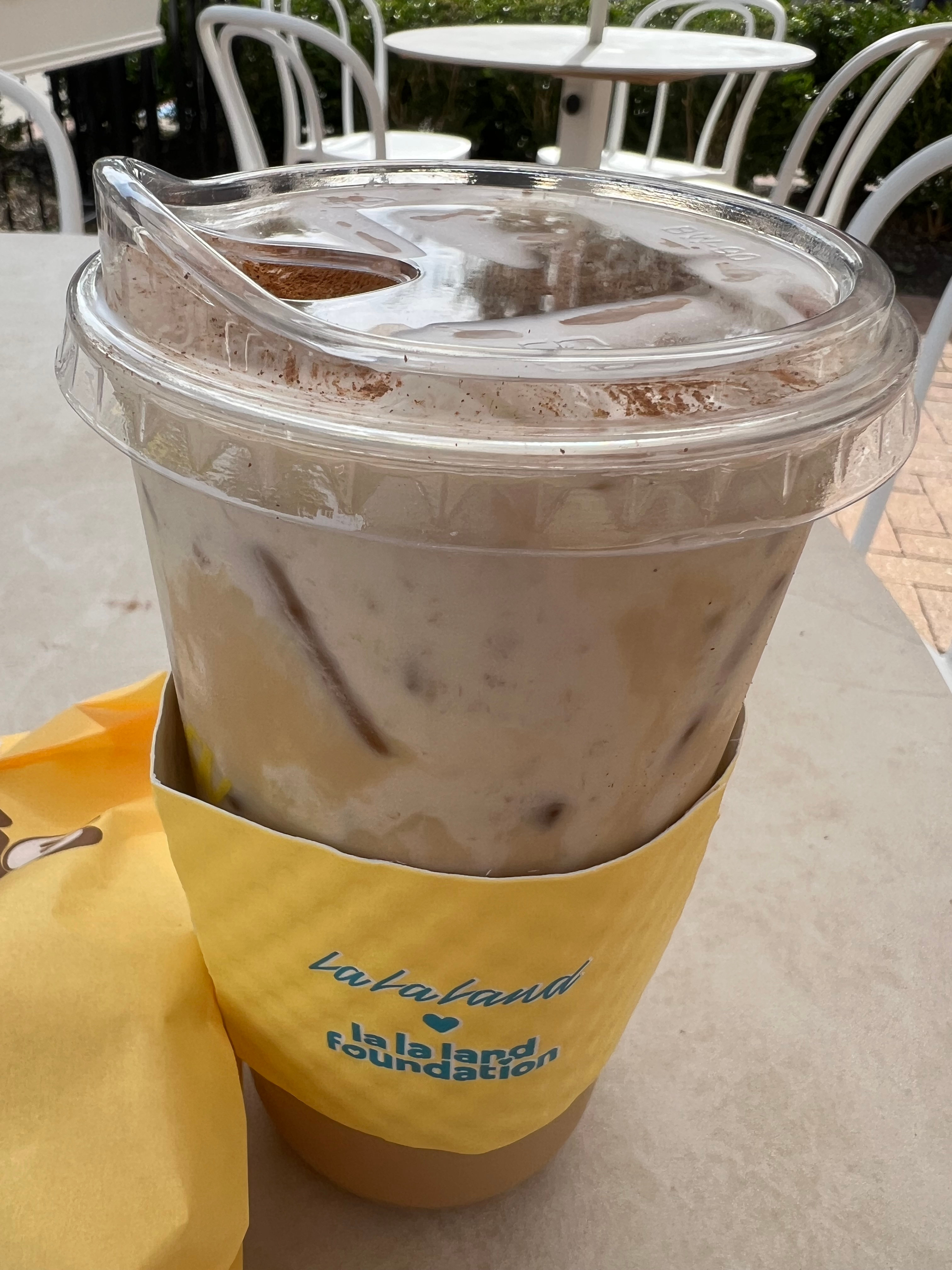 La La Land Banana Cream Top Latte… so delicious. Fresh banana, secret sauce, vanilla bean cloud, cinnamon, espresso, ice.