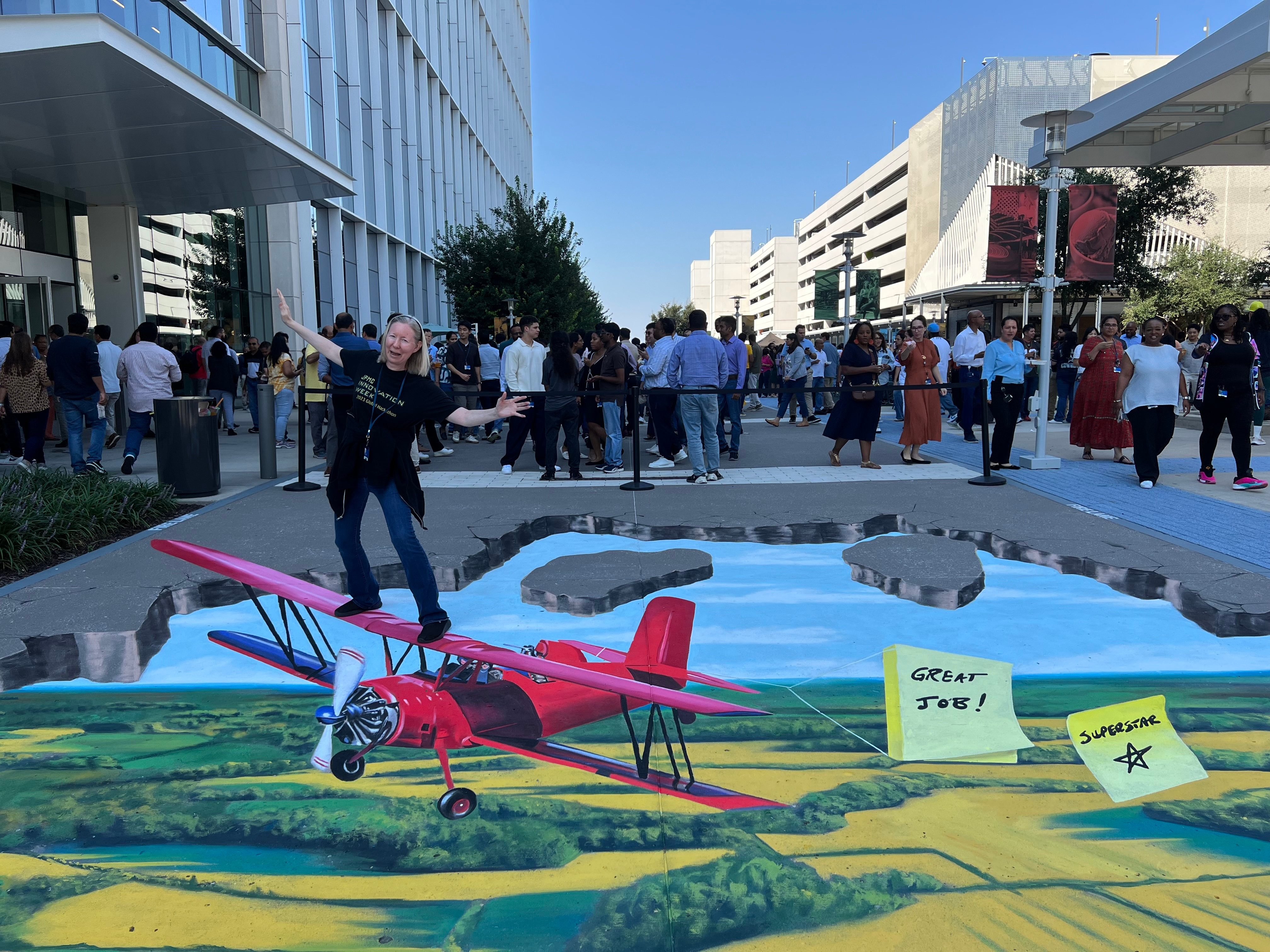 JPMorganChase Plano celebrated Texas Independence Day with line dancing, painting classes, Texas trivia, and a photo op with a real Texas longhorn.