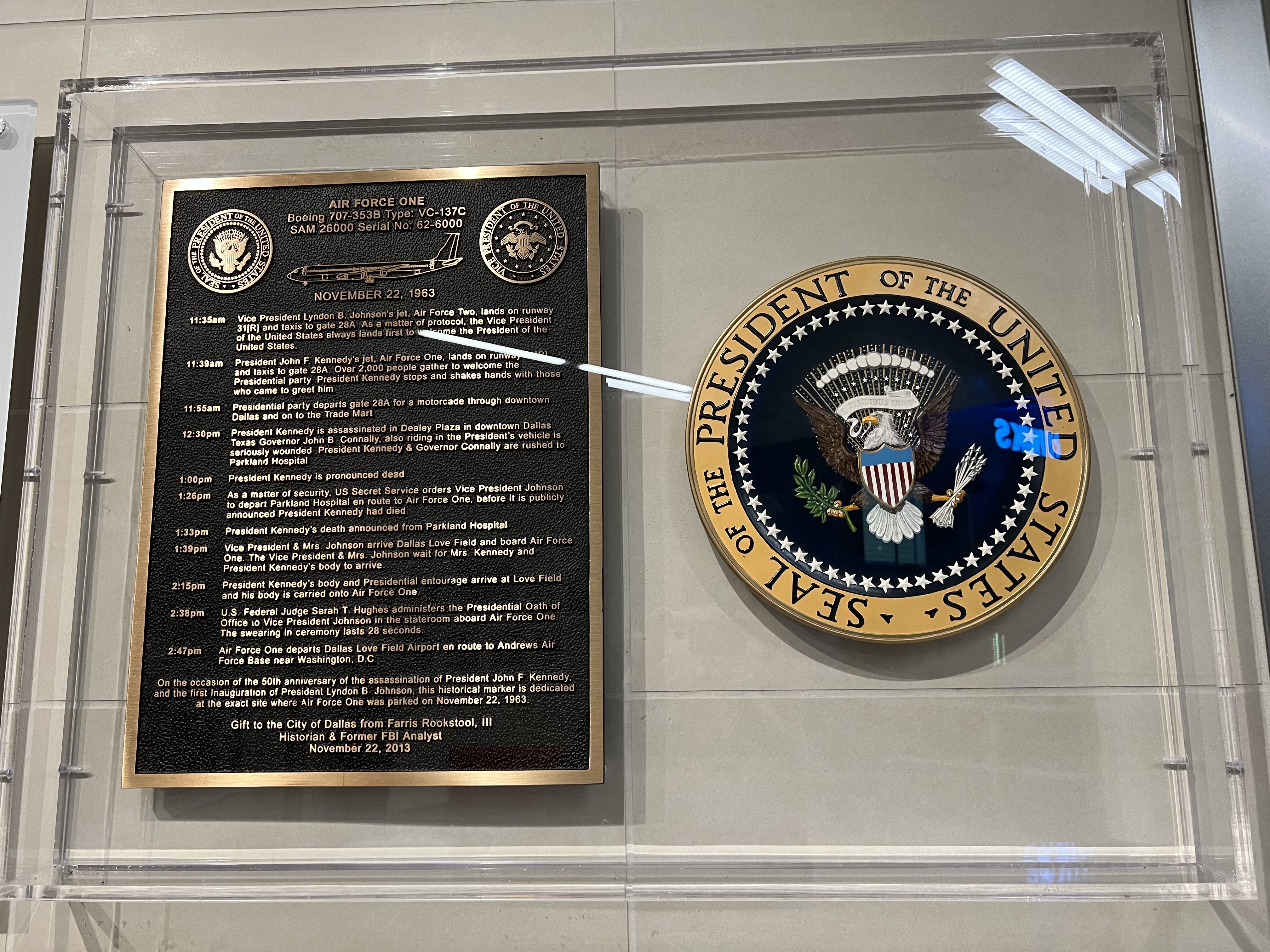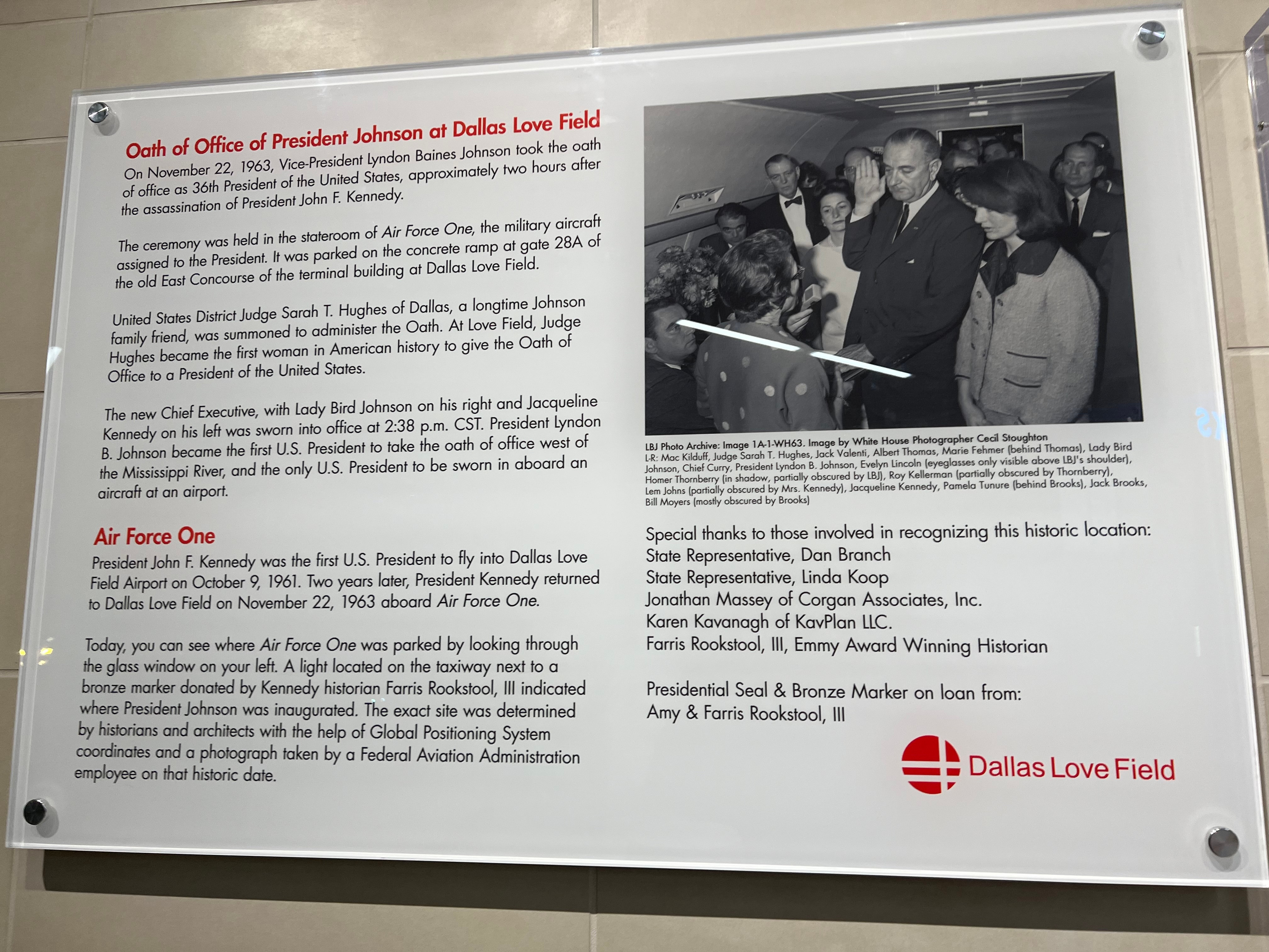 An observation deck overlooking the spot where Vice President Lyndon B. Johnson took the oath of office November 22, 1963 on the Air Force One