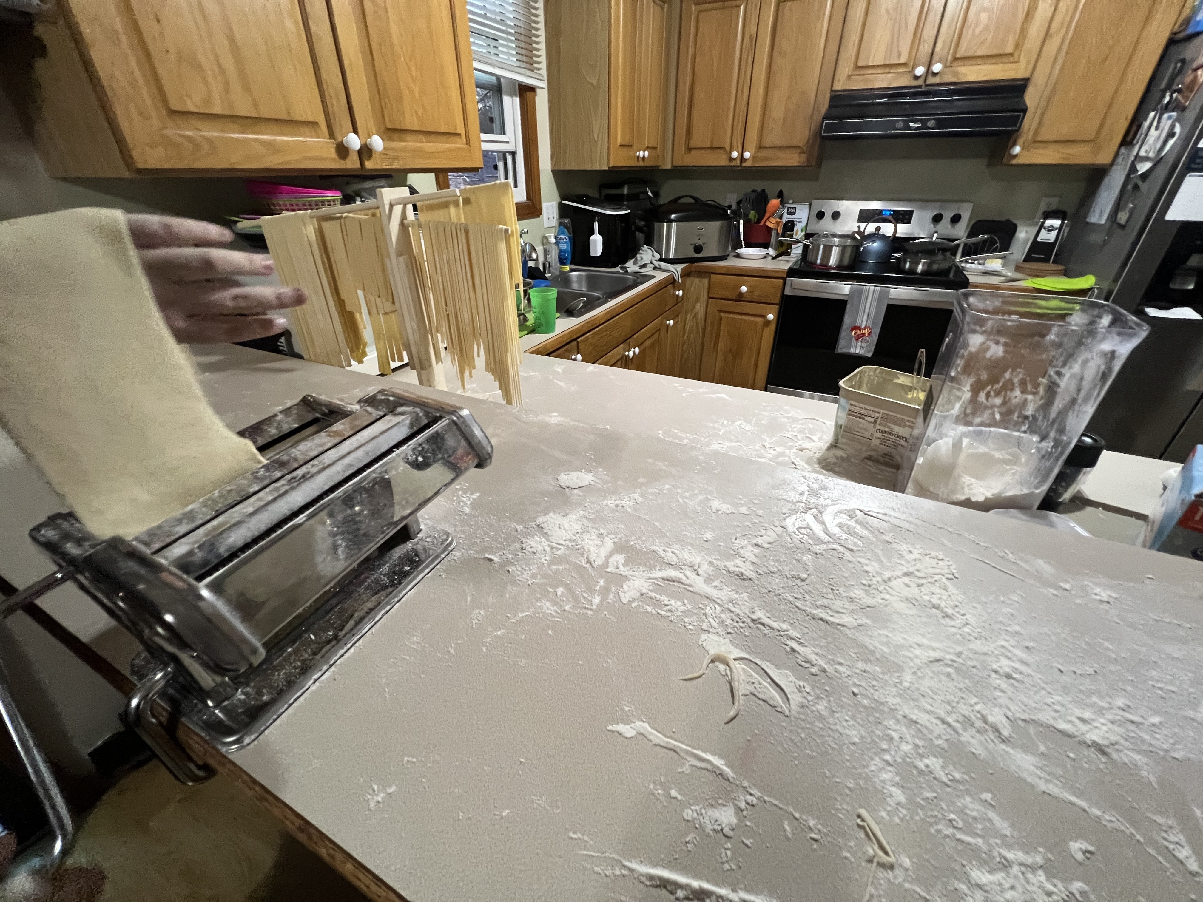 After three turkey dinners, Thanksgiving in Lawrence brought family time, Wicked for Good, National Lampoon’s Christmas Vacation, and a pasta bar! The bar consisted of fresh linguini and spaghetti, hamburger, chicken, Italian sausage, sautéed mushrooms, marinara sauce, vodka sauce, Alfredo sauce, breadsticks, and salad.