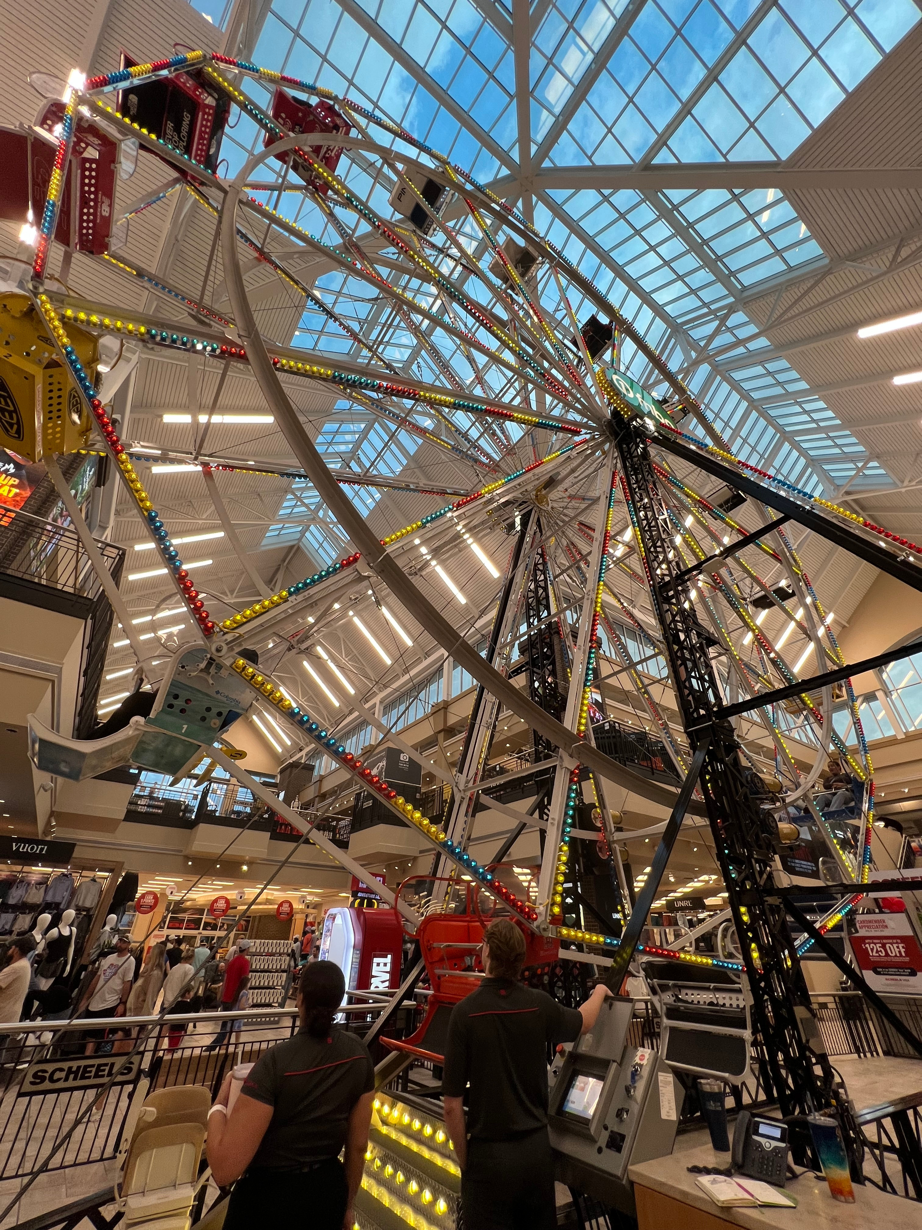 Scheels in The Colony contains a 65-foot indoor Ferris wheel. It costs $1 to ride. I jumped at the chance.