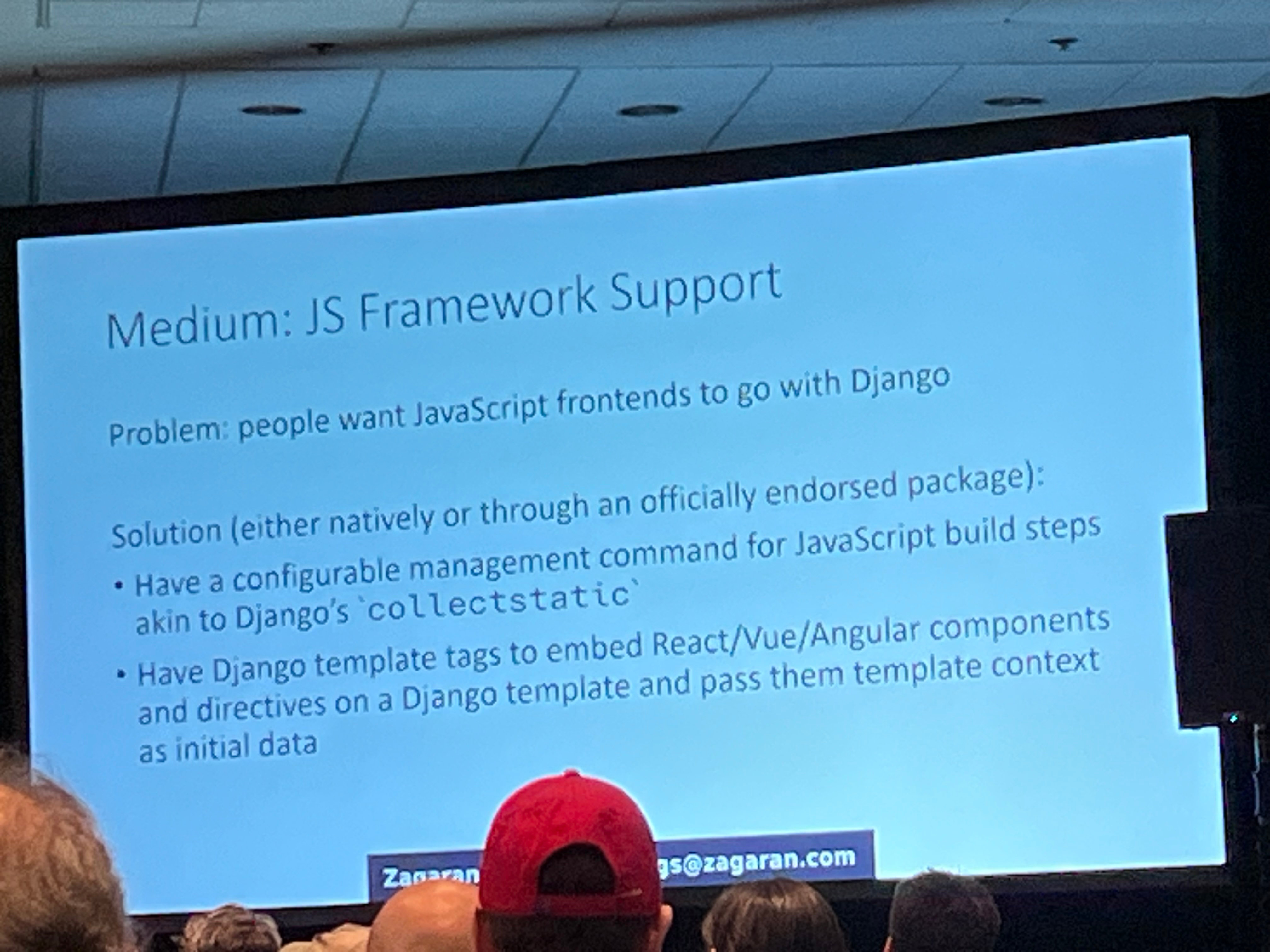 During Q&A, Jeff Triplett asked what can Django to do better support htmx/frameworks that embrace htmx (as of Django 6.0, template partials are baked-in) and Natalia Bidart pointed out the challenge with testing.