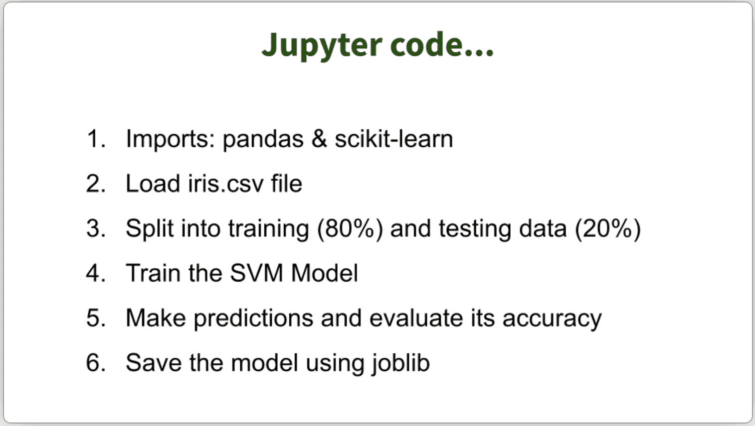 Jupyter code… the start of the classic machine learning model in a Jupyter notebook.
